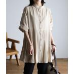 チュニック シャツワンピース シャツブラウス シャツワンピ ブラウス ロングシャツ ロング丈 シャツ ポケット付け 5分袖 トップス 綿麻 ゆったり 体型カバー