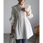 サマンサモスモス Samansa Mos2 SM2 リネン混スキッパーシャツチュニック F\キナリ ブラウス【2400014741780】