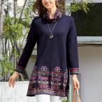 チュニック ゲリコットン刺繍 ハイネックチュニックプルオーバー
