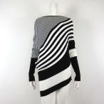 チュウ CHU XXX チュニック ニット ボーダー 切替 アシンメトリーヘム 変形 ドルマンスリーブ リブ袖 長袖 M オフ白 黒 ブラック