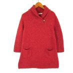 ニット チュニック セーター ショールカラー ネップ メランジ ウール 7分袖 レッドオレンジ レディース
