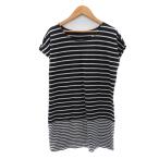 プラステ PLST シャツ バスクシャツ チュニック ワンピース 7分袖 ボーダー L 白 ホワイト 青 ブルー レディース