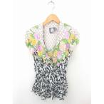 House of Wide チュニック ワンピース カシュクール 花柄 肩パッド 半袖 S 白 黒 ホワイト ブラック /TT30 レディース