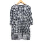 コフィ コレクト KOFI COLLECT チュニック シャツワンピ ギンガムチェック 柄 ワイド袖 七分袖 丸首 コットン 綿 M 黒 白 /HT23 レディース