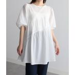 送料無料 sakayori チュニックカットソー・38◆サカヨリ/異素材切替え/リボン/21*7*3-5