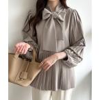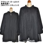 チュニック ツーウェイ ネームカット P3 レディース 異素材使い プリーツ レース かわいい 春 秋 春服 秋服 ブラック 黒 小さいサイズ 大きいサイズ