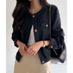 ジャケット ノーカラージャケット ツイードライク ノーカラー ジャケット レディース