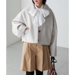 ステンカラーコート コート 「LOULOU WILLOUGHBY」ファー衿ニットショートコート レディース