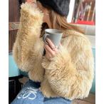 ノーカラーコート コート 「AYA×クラシカルエルフコラボ」秋冬ムード高まる♪ふわふわノーカラーショートミックスファーコート レディース
