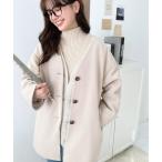 「VIS」 ノーカラーコート M ベージュ レディース