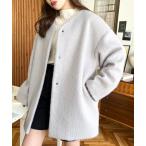 ノーカラーコート コート ノーカラーシャギーコート レディース