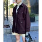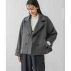ピーコート pコート 襟付きダブルブレストショートメルトンジャケット レディース
