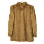 ノーブランド ファーコート アウター 毛皮 ミンク ミドル ヘリンボーン 9 M 茶色 ブラウン /XZ ■GY22 レディース