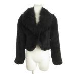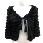 ストロベリーフィールズ STRAWBERRY-FIELDS ファージャケット ボレロ ラビットファー 毛皮 前結び リボン 七分袖 黒 ブラック /AU
