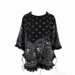DIG DEEP ディグディープ ポンチョ ニット スカル ペイズリー柄 フード フリンジ ラウンドヘム ストレッチ 7分袖 M 黒 ブラック オフ白