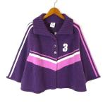アディダス adidas ニット ポンチョ ロゴ フロッキー 刺繍 スリーストライプス 配色 ビッグボタン ウール 7分袖 XS 紫 オフ白 ピンク