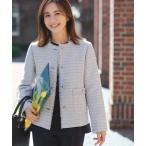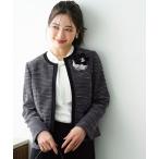 ジャケット ノーカラージャケット トライスピン 杢 ツイード パール モチーフ ボタン ジャケット(セレモニー対応可) レディース