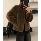 コート アウター ショート スタンドカラー エコファーコート レディース
