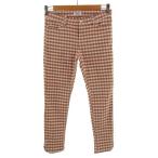 ザラ ベーシック ZARA BASIC パンツ クロップド サブリナ 七分丈 ストレッチ シャリ感 スリット チェック M 茶 ブラウン /CK22 レディース
