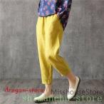 サルエルパンツ レディース テーパードパンツ ワイドパンツ 9分丈 綿麻 ガウチョパンツ リネン ウエストゴム おしゃれ 着痩せ ゆったり カジュアル