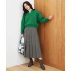 パンツ ウールブレンドチェックワイドパンツ レディース
