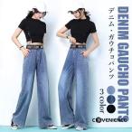 【特価】ガウチョパンツ レディース デニム ハイウエスト ボトムス ワイドパンツ ウエストゴム 大きいサイズ ロングパンツ ゆったり 体型カバー 着痩せ 細身