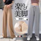 裏起毛ワイドパンツレディースロングパンツ冬ロング丈ボトムス暖かい防寒着おしゃれ美脚裏ボアゴムウェスト無地2TYPES