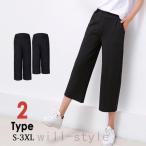 【特価】ワイドパンツ レディース 大きいサイズ ガウチョ ロングパンツ 9分丈 涼しい ボトムス ウェストゴム入り 春 夏 ストレッチ素材 無地 薄手 ゆった