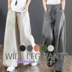 ワイドパンツ レディース 綿麻 ボトムス 麻混 ガウチョ ゆったり 体型カバー