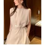 スカートスーツ ベルト付ラップ風スカート
