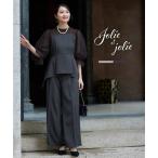 セレモニースーツ セットアップ ペプラムVネック金ボタンベスト&ロングタックワイドパンツスーツセットアップ レディース