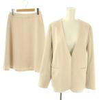 ナチュラルビューティーベーシック NATURAL BEAUTY BASIC セットアップ スーツ ノーカラージャケット スカート 膝丈 S XS ベージュ /HK ■O