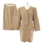 ハナエモリ HANAE MORI セットアップ ジャケット ノーカラー スカート 膝丈 タイト ウール 9A3 ベージュ /NR ■OS レディース