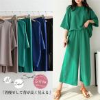 セットアップ レディース 夏 接触冷感 春 半袖 ス ワイドパンツ 50代 40代 30代 20代 きれいめ ワンマイル ルームウェア おしゃれ