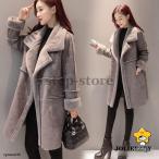 ゆったり フェイクムートンコート ロング丈 セーム革ジャケット 裏起毛 裏ボアコート ロング丈コート グレー ピンク 高品質レディース 秋冬