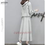 セットアップ レディース カジュアル 初秋 新作 スウェットシャツ スカート カジュアルファッション ゆったり ツーピーススーツ フード付き シンプル 無地