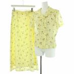 ロートレアモン LAUTREAMONT セットアップ 上下 花柄 シャツジャケット 半袖 肩パット入 スカート タイト ロング 3 L 黄色 レディース