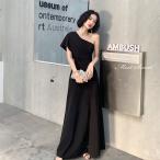 カラードレス ファスナー ブラック ワンショルダー パーティードレス フォーマル ロングドレス 結婚式 二次会 披露宴 発表会 演奏会 スリット スレンダードレス
