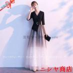 ドレス カラードレス ロング 安い 結婚式 ロングドレス 演奏会 コンサート 二次会 Aライン お呼ばれ パーティードレス 5分袖 Vネック 20代 30代 40代