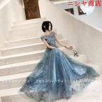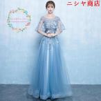 演奏会用ロングドレス パーティードレス 可愛い 大きいサイズ ウエディングドレス 二次会 花嫁 20代 30代 40代 撮影用 発表会 姫系 カラードレス ブルー
