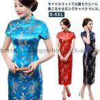 パーティードレス チャイナドレス チャイナ服 ロングワンピース 結婚式 龍鳳柄 ロング 半袖 花柄 チャイナワンピース サイドスリット ロン