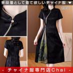 チャイナドレス チャイナ服 ★chaiはポイント最大3倍★ 春夏 ブラック ワンピース 上品な風合い 半袖 二胡衣装 旗袍 普段着 zl431