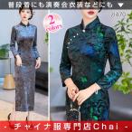 チャイナドレス チャイナ服 ★chaiはポイント最大3倍★ ワンピース 花柄 高級感 エレガント ロングワンピ 上品な風合い 長袖 ロング丈 チャイナ風ワンピ zl471