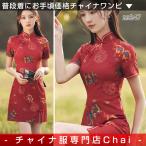 チャイナドレス ★chaiはポイント最大3倍★ チャイナ服 ワンピース ショート丈 レッド 中国柄 春夏 半袖 チーパオ 旗袍 普段着 民族 中国風 zs247