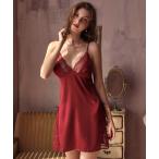 レース × サテン サイドスリット キャミソールランジェリー レディース