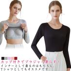 カップ付きインナートップス 重ね着 長袖 長袖インナー ブラトップ 秋 インナー 無地 Tシャツ パット付き ストレッチ レディース カップ付き 夏