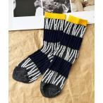靴下 ボーダー刺繍ソックス「クルー」 レディース