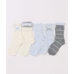 靴下 「7足セット」リボン 刺繍 配色 クルー ソックス レディース