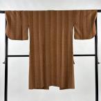 道中着 身丈119cm 裄丈65.5cm M 和装コート 着物衿 紬地 縦縞 薄茶色 正絹 名品 中古