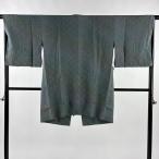 美品 道中着 身丈110cm 裄丈66cm M 和装コート 着物衿 お召地 幾何学模様 緑 正絹 名品 中古